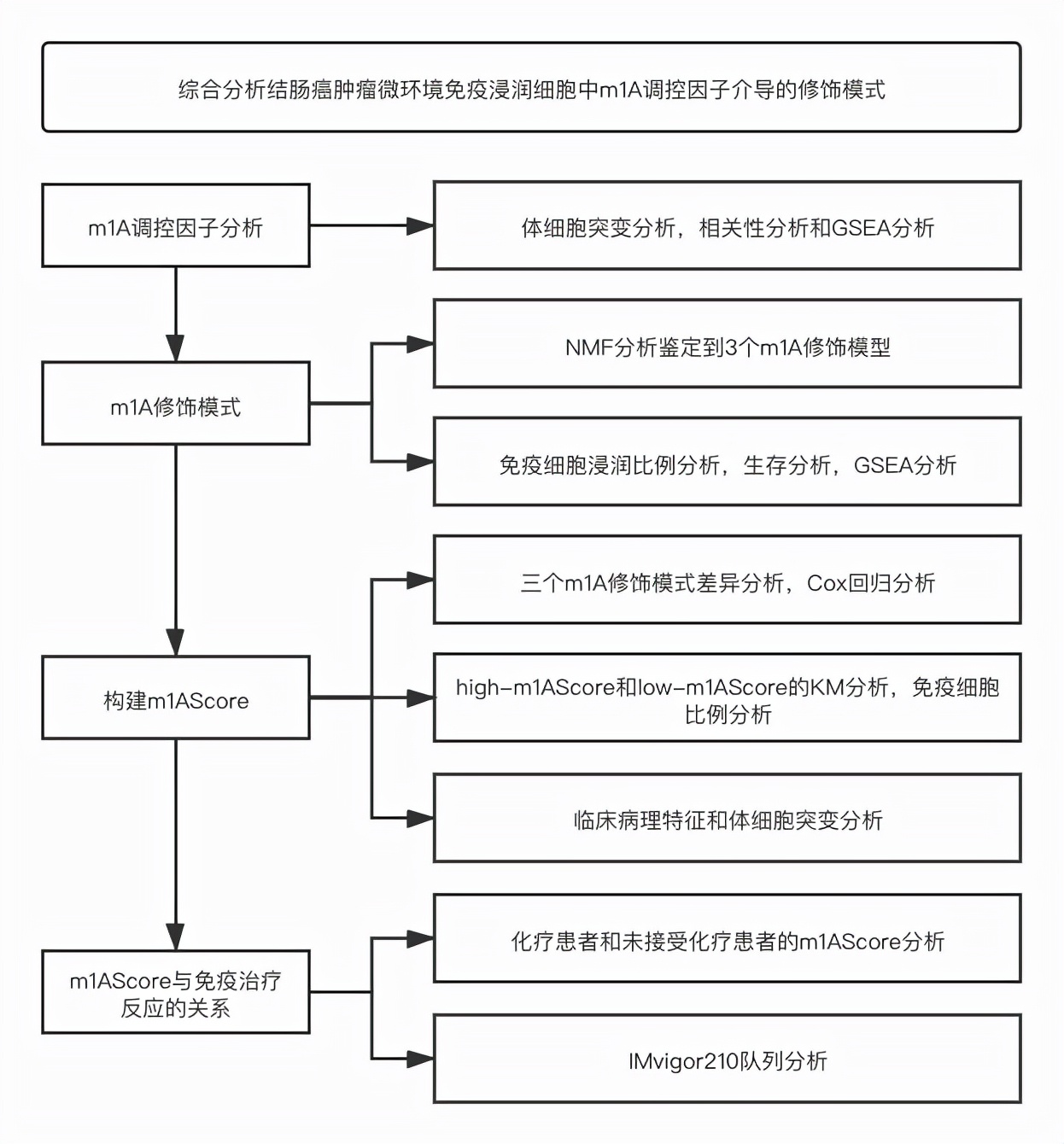 大家好!今天给大家介绍一篇2021年6月发表在OncoImmunology(IF:8.110)上的文章。作者对结肠癌患者的GEO数据集进行分析,构建m1AScore。m1AScore与患者预后,肿瘤免疫微环境和免疫治疗反应具有一定关系。