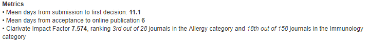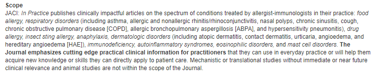 总的来说,Journal of Allergy and Clinical Immunology-In Practice 是一本实力不俗的新发期刊,影响因子持续上涨,发文量稳定上升,审稿快,也不收版面费,有需要的朋友可以准备了!