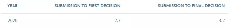 我们从官网上给出的时间可以看到,从提交到做出第一个决定只需要2.3周,从提交到做出最后一个决定只需要3.2周,这个速度是非常快的。同时,官网给出的接收率为13%!