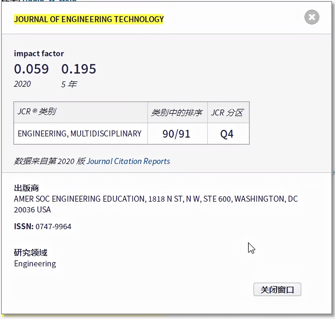 但是不可思议的是,据最新公布的JCR2020表明,Journal of Engineering Technology的IF仅为0.059,狂跌98.36%,真是极其罕见!