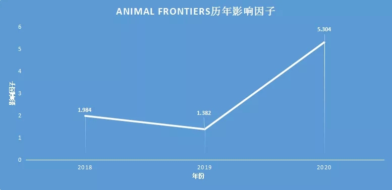 Animal Frontiers于2018年获得首个影响因子1.984分,2019年影响因子1.382分,略有下降。但今年最新的影响因子5.304分,增长迅猛,相比去年,涨幅超283%。
