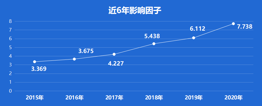 Medical Journal of Australia,简称:MJA;ISSN:0025-729X,E-ISSN:1326-5377;1914年创刊,出版国家:澳大利亚;由Australasian Medical Publishing Company出版。近5年影响因子从3分涨至7分,从2016年开始至2020年逐年增长1分,2020年突破7分+,2020年影响因子为:7.738。