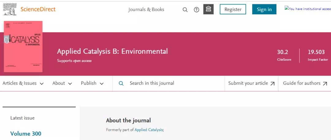 今天,我们来看看这本SCI期刊:APPLIED CATALYSIS B-ENVIRONMENTAL 。从现有的记录来看,APPLIED CATALYSIS B-ENVIRONMENTAL 的2021年影响因子(JCR2020)是19.503,自引率7.73%。