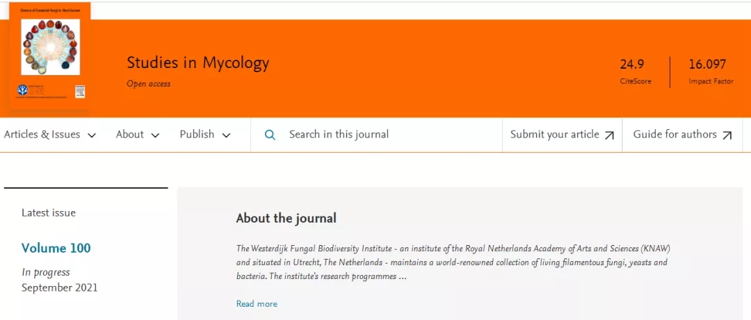 今天,我们来看看这本SCI期刊:STUDIES IN MYCOLOGY。从现有的记录来看,STUDIES IN MYCOLOGY 的2021年影响因子(JCR2020)是16.097,2020年是9.027,比2020年增长7.07,增长比例78.32%。