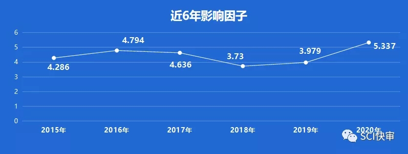 Oral Oncology,ISSN:1368-8375,E-ISSN:1879-0593,1997年创刊,出版国家:英国;由ELSEVIER出版。近6年影响因子有一定的起伏,2015年至2017年影响因子均为4分+,2018年跌落3分,2019年持续3分+,2020年突破5分,2020年影响因子为:5.337,即时因子为4.302,按目前的完成度来看,明年应该也是能够持续5分+。