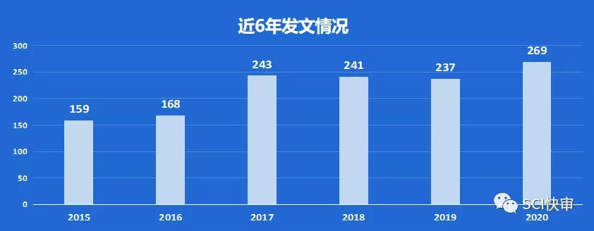Oral Oncology近6年发文量整体不多,2017年开始突破两百篇,2020年为近6年至最;2020年综述类发文量为17%左右;2020年国人发文占比为20.82%,国人相对友好。