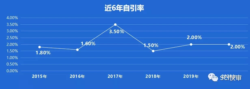 Immunology Letters近6年自引率均控制在4%以下;2017年自引率为最高也仅在3.5%,2020年自引率为2%,非常低,暂时不用有自引率方面的顾虑。