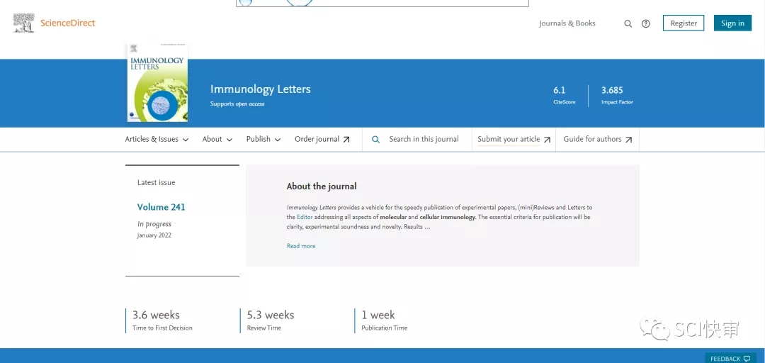 Immunology Letters是免疫学领域的期刊;影响因子稳中有进,今年3分+,中科院3区;审稿有快有慢,整体偏快,一审相对较长,见刊很快;自引率非常低;发文量稳定100+,国人相对友好,有合适稿件的可以尝试!
