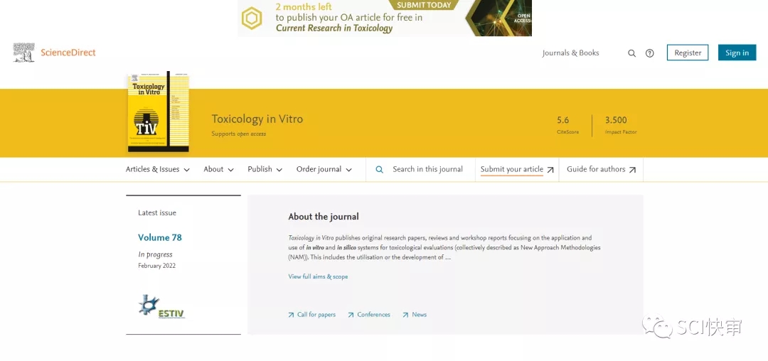 期刊官网:https://www.sciencedirect.com/journal/toxicology-in-vitro