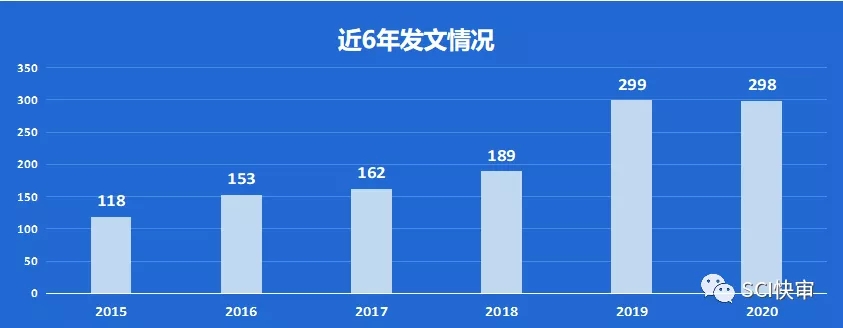 Genetics in Medicine近6年发文量整体呈上升趋势,从100多篇逐年增加到近300篇,截止目前为止2021年发文量也是200多篇了,预计今年的发文量与去年也变化不大;2020年国人发文占比为3.36%,国人发文还是非常少的。