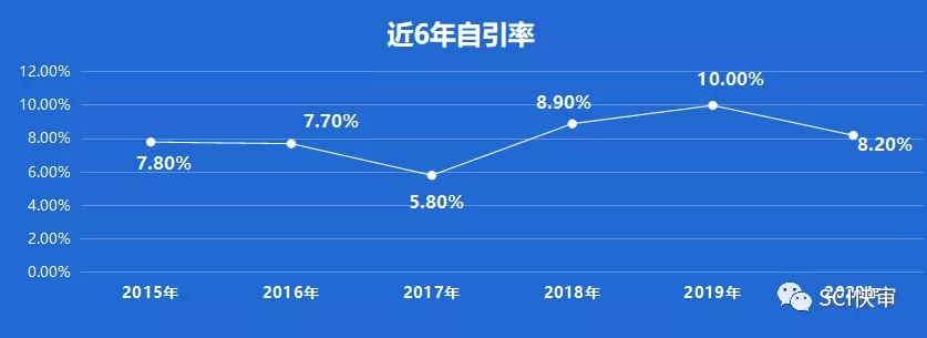 Genetics in Medicine近6年自引率均控制在4%以下;2017年自引率为最高也仅在3.9%,2020年自引率为3.6%,非常低,暂时不用有自引率方面的顾虑。