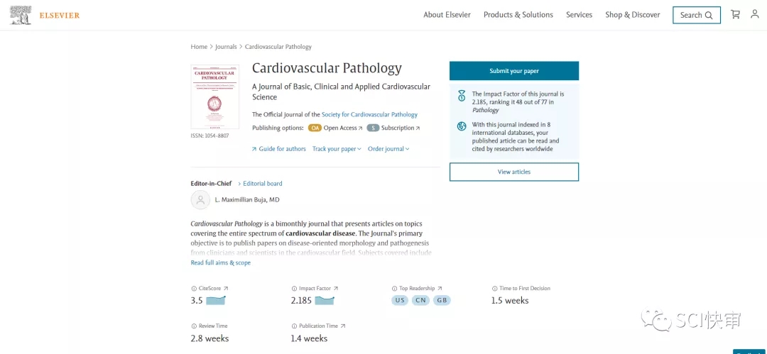 期刊官网:https://www.journals.elsevier.com/cardiovascular-pathology