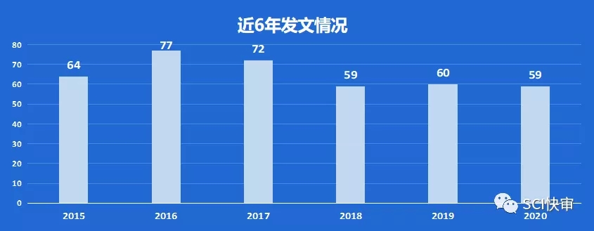 Cardiovascular Pathology发文量均在60篇左右,2016年发文量最高仅为77篇;2020年综述类发文量占比为23%左右;2020年国人发文占比为13.33%,国人发文占比还是比较少的。