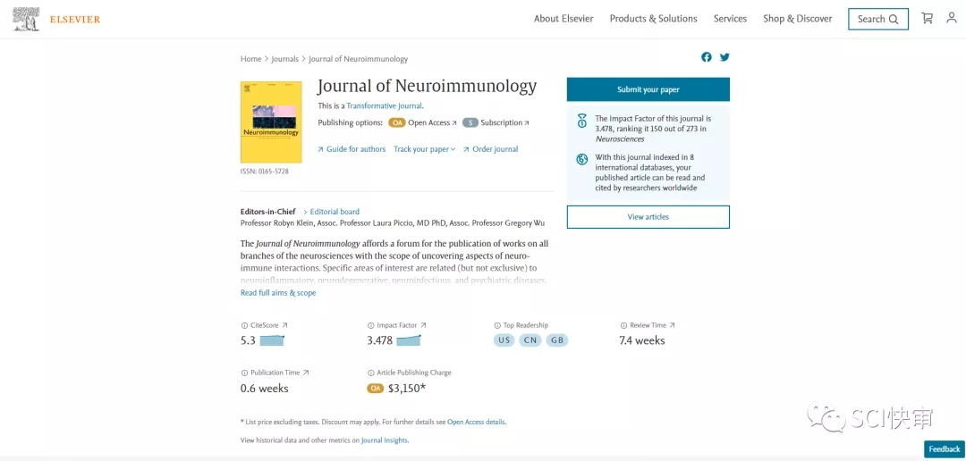 期刊官网:https://www.journals.elsevier.com/journal-of-neuroimmunology