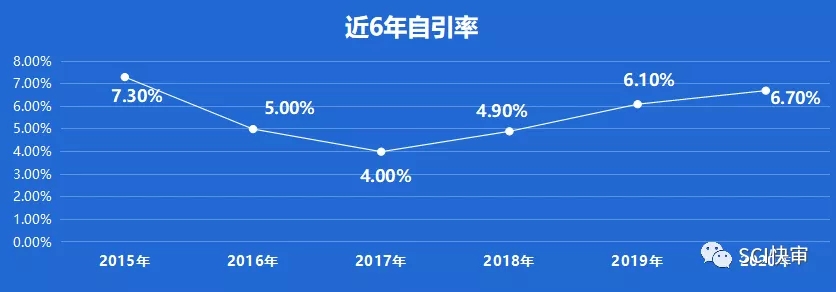 JOURNAL OF CLINICAL ENDOCRINOLOGY & METABOLISM近6年自引率均控制在8%以内,2015年最高为7.3%;2020年自引率为6.7%,比较低,暂时不用担心自引率方面的问题。