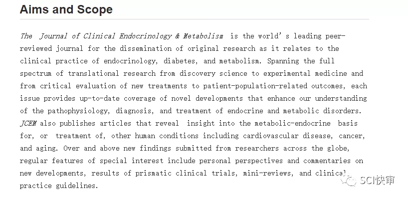 JOURNAL OF CLINICAL ENDOCRINOLOGY & METABOLISM是本老牌杂志,影响因子多年5分+;JCR1区,中科院1区Top;审稿有快有慢,整体较快;自引率较低;发文量不多,国人发文占比较大;可选OA,非OA则作者无需支付版面费;值得投稿!