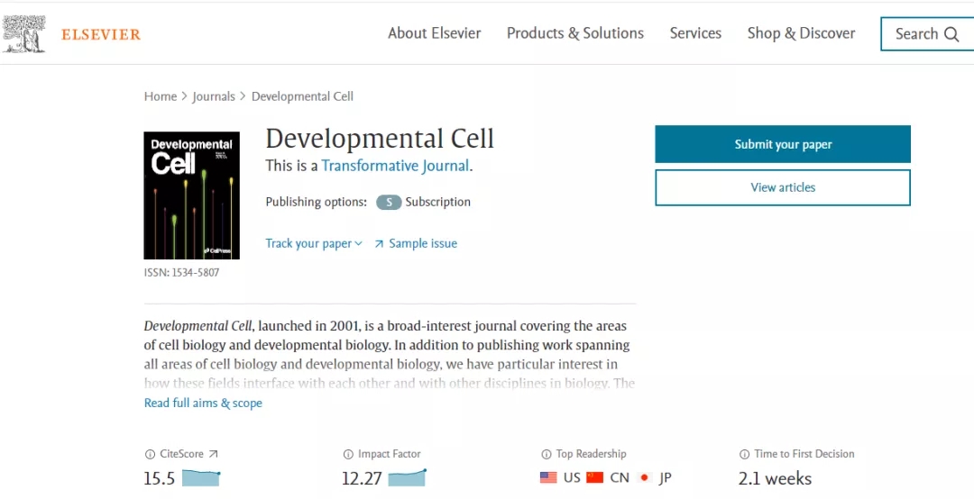 今天,我们来看看这本SCI期刊:DEVELOPMENTAL CELL。从现有的记录来看,DEVELOPMENTAL CELL 的2021年影响因子(JCR2020)是12.270。