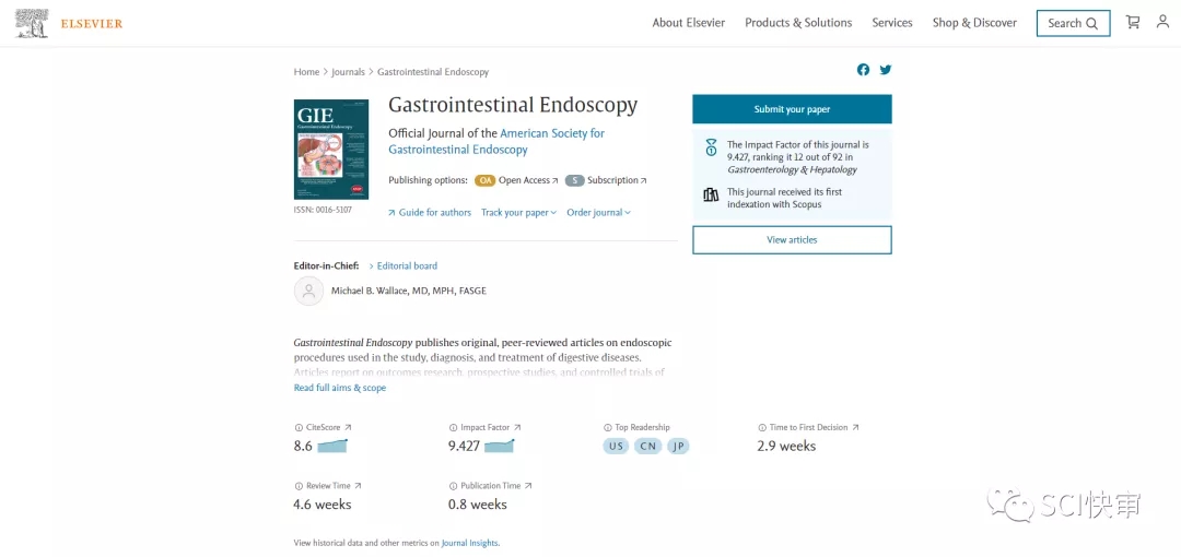 Gastrointestinal Endoscopy是消化系统领域内的顶级期刊了;影响因子9.427;JCR1区,中科院1区TOP;审稿周期有快有慢;自引率较低;发文量200篇左右,国人发文不多;可选OA,不选OA的话作者无需支付版面费;有不错的稿件值得尝试!