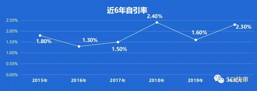 BMC Urology近6年自引率均控制在3%以内,2018年最高为2.4%;2020年自引率为2.3%,非常低。
