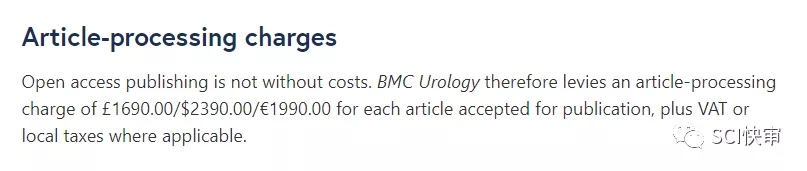 根据官网消息,在BMC Urology一本开放获取的期刊,每篇文章收取£1690.00/$2390.00/€1990.00的文章处理费,折合人民币约为15209元,价格是相对来说偏贵了些。