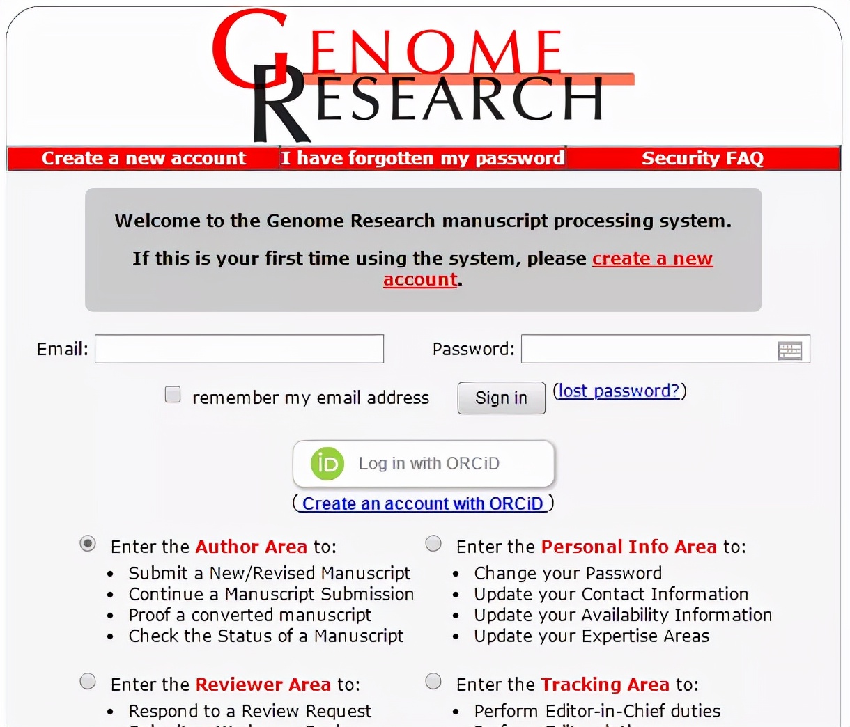 如果还没有注册过账户,只需点击“Create an account with ORCiD”注册账户即可!