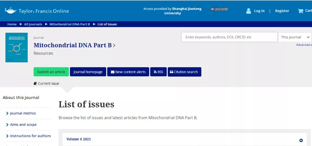 Mitochondrial DNA Part B-Resources 的收稿范围,期刊是如此介绍的(截取部分内容),详情请阅读: