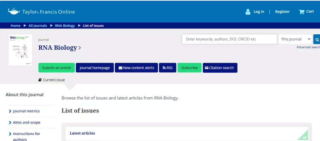 今天,我们来看看这本SCI期刊:RNA Biology。从现有的记录来看,RNA Biology 的2021年影响因子(JCR2020)是4.652。