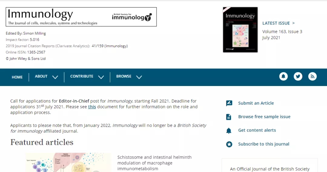 今天,我们来看看这本SCI期刊:Immunology。从现有的记录来看,Immunology 的2021年影响因子(JCR2020)是7.397。