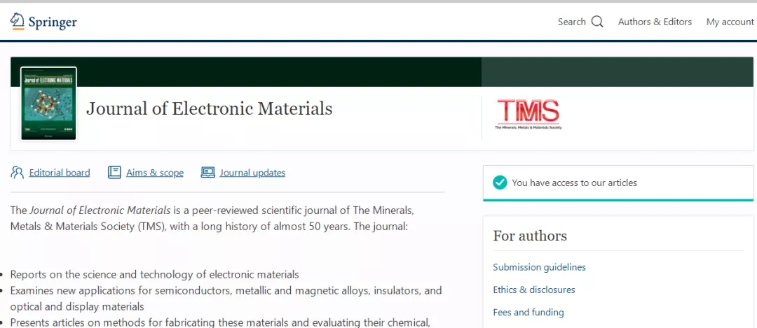 JOURNAL OF ELECTRONIC MATERIALS 的收稿范围,期刊是如此介绍的(截取部分内容),详情请阅读: