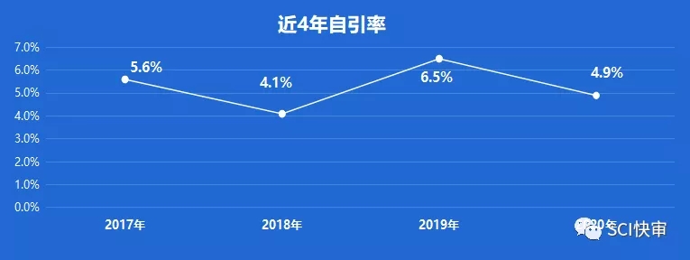 Journal for Immunotherapy of Cancer近4年自引率均控制在6%以内,最高为2019年6.5%;2020年自引率为4.9%,自引率比较低,暂时不用有自引率方面的顾虑。