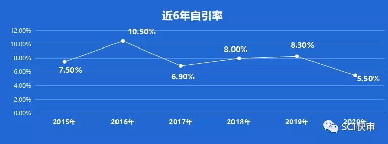 European Heart Journal近6年自引率均控制在20%以内,2015年最高为19.2%;从2018年开始有所控制,逐年有下降趋势,2020年自引率为8.7%,目前较低。