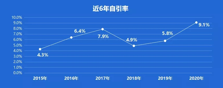 IBIS近6年自引率均控制在10%以内,2020年最高,2020年自引率为9.1%,目前较低。