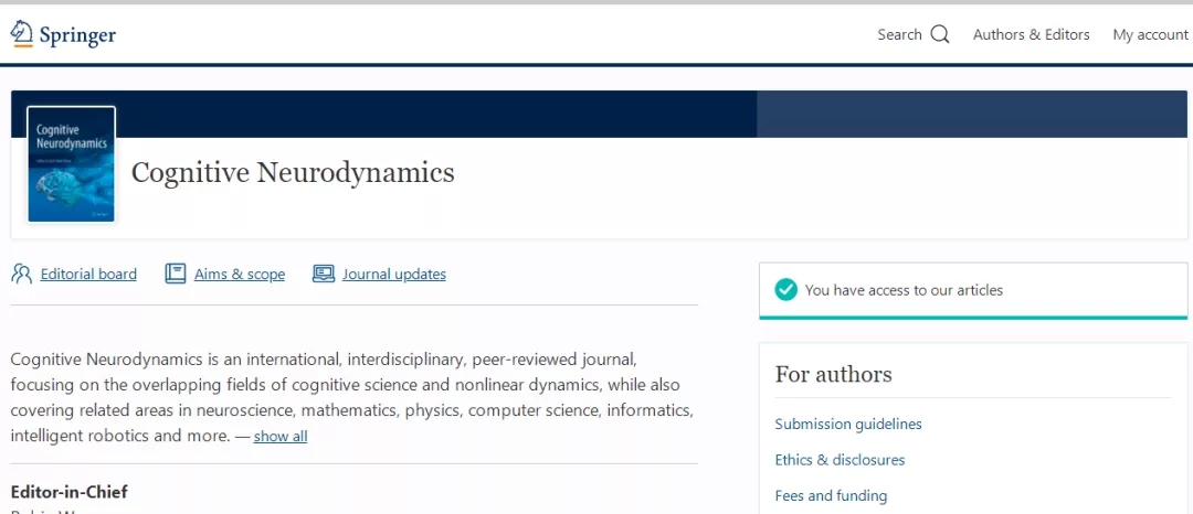 Cognitive Neurodynamics 的收稿范围,期刊是如此介绍的(截取部分内容),详情请阅读: