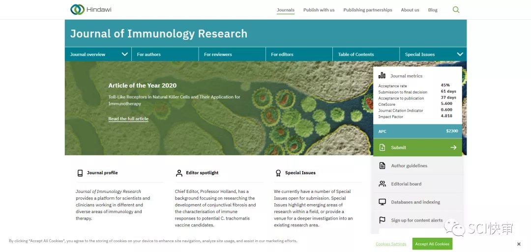 今天给大家推介的期刊是:Journal of Immunology Research
