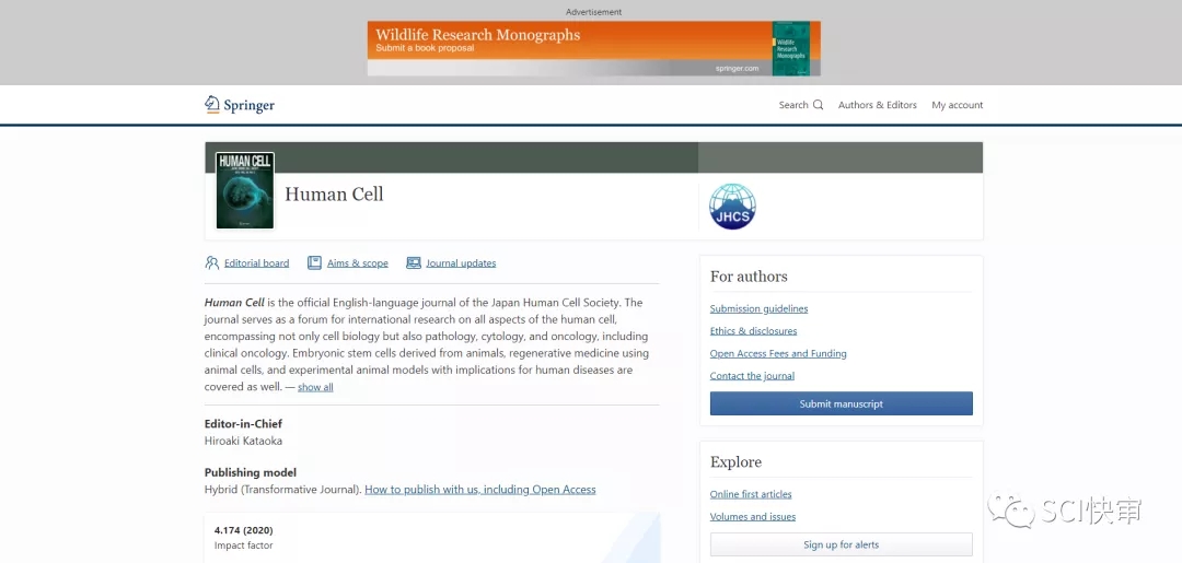今天给大家推介的期刊是:Human Cell