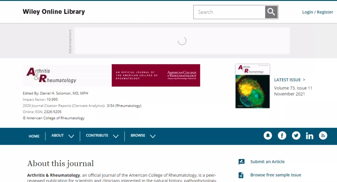 Arthritis & Rheumatology, an official journal of the American College of Rheumatology, is a peer-reviewed publication for scientists and clinicians interested in the natural history, pathophysiology, treatment, and outcome of the rheumatic diseases. Arthritis & Rheumatology publishes the highest quality basic and clinical research related to the rheumatic diseases, encompassing a wide range of areas of investigative activity. In addition, the journal publishes review articles, editorials, and other educational material intended for both researchers and clinicians.
