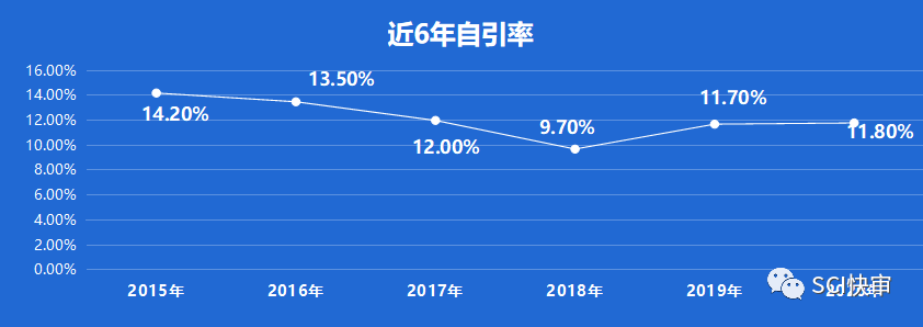 Osteoporosis International近6年自引率均控制在15%以下,2020年自引率为11.8%,自引率相对较低,离安全线有一定的距离。
