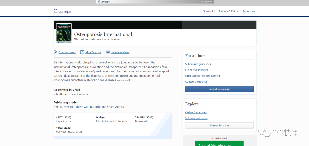 今天给大家推介的期刊是:Osteoporosis International
