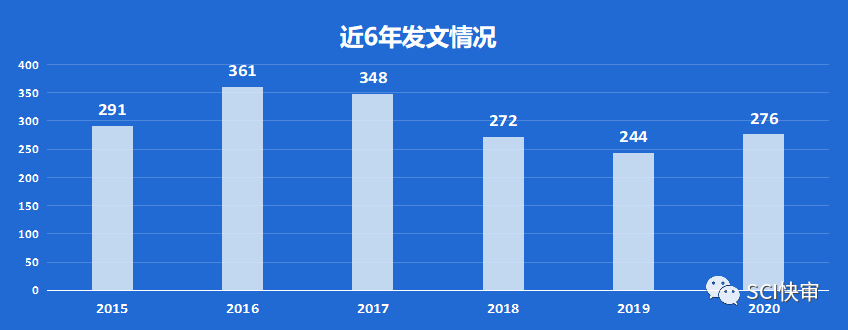 Osteoporosis International近几年年发文量有一定起伏,2016年与2017年发文量相对较高,都有300多篇,其他年份均为200多篇,发文量不多也不算太少;2020年国人发文占比约为10.14%,国人发文占比不多。