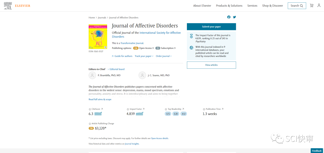 期刊官网:https://www.journals.elsevier.com/journal-of-affective-disorders