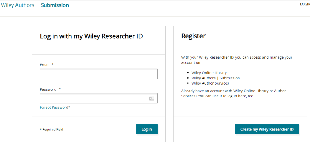如果还没有注册过账户,只需点击“Create my Wiley Researcher ID”注册账户即可!