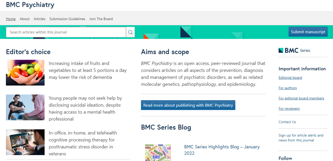 BMC Psychiatry 的收稿范围,期刊是如此介绍的(截取部分内容),详情请阅读: