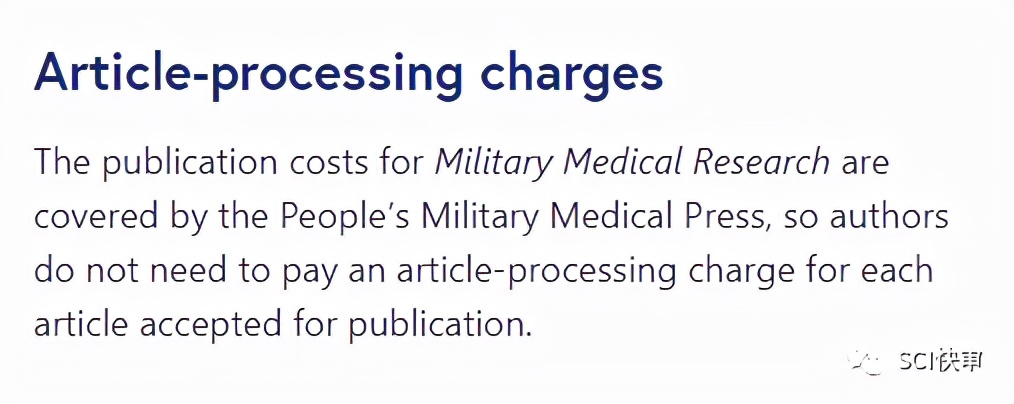 根据官网消息,Military Medical Research是一本黄金开放获取杂志,出版费用由军事人民军医出版社:人民军医出版社承担,作者无需支付文章处理费