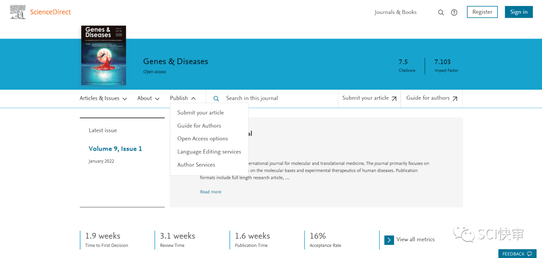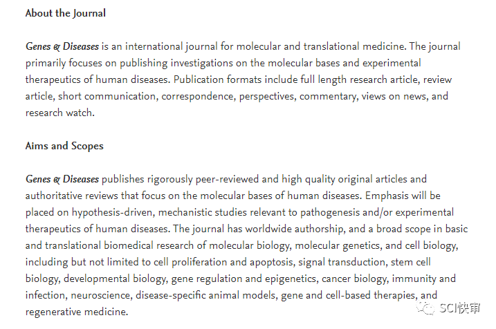 期刊官网:https://www.sciencedirect.com/journal/genes-and-diseases