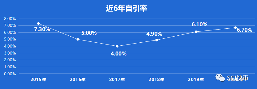 JOURNAL OF CLINICAL ENDOCRINOLOGY & METABOLISM近6年自引率均控制在8%以内,2015年最高为7.3%;2020年自引率为6.7%,比较低,暂时不用担心自引率方面的问题。