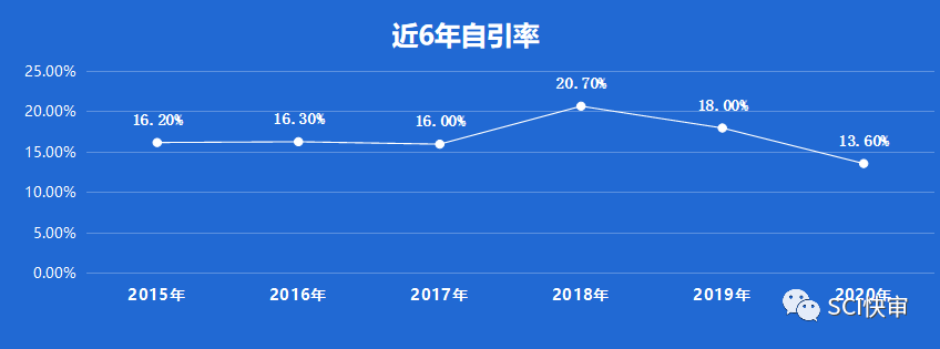 JOURNAL OF NON-CRYSTALLINE SOLIDS近6年自引率均控制在21%以下;2018年自引率高达20.7%,2020年自引率为13.6%,不低,但也都在安全线内,后续需要留意一下。
