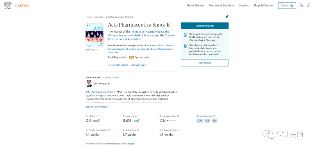 期刊官网:https://www.journals.elsevier.com/acta-pharmaceutica-sinica-b