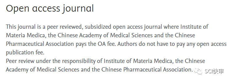 Acta Pharmaceutica Sinica B是由中国医学科学院药物研究所、中国药学会等单位承担OA费用的经同行评议、资助的开放获取期刊。作者无需支付任何开放获取出版费用。