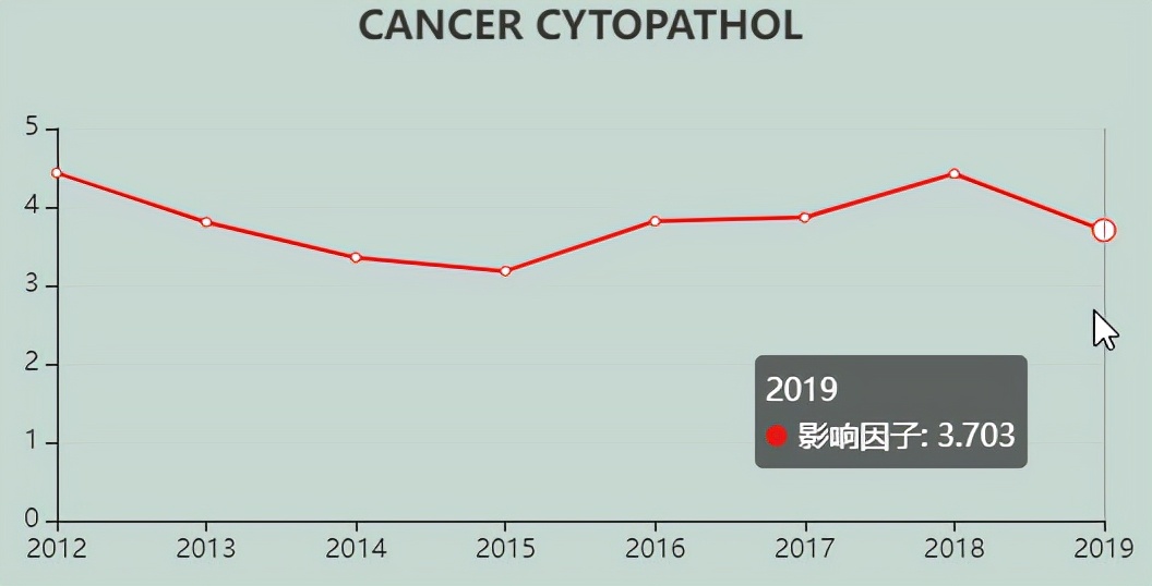 今天,我们来看看这本SCI期刊:CANCER CYTOPATHOLOGY。从现有的记录来看,CANCER CYTOPATHOLOGY 的2021年影响因子(JCR2020)是5.284,2020年是3.787,比2020年增长1.497,增长比例39.53%。