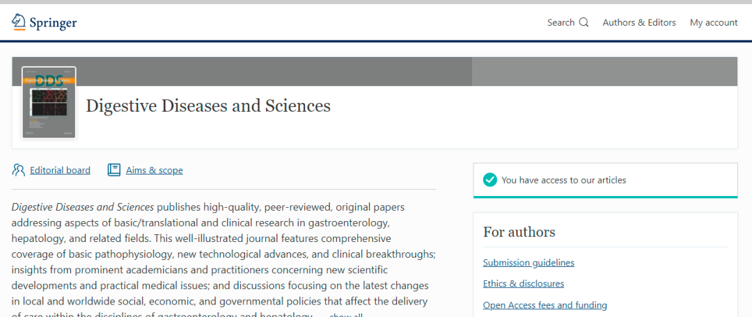 DIGESTIVE DISEASES AND SCIENCES 的收稿范围,期刊是如此介绍的(截取部分内容),详情请阅读: